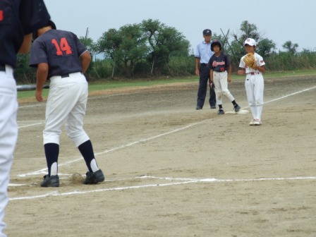 右中間の2塁打の当たりを1-2塁間で挟んでアウト!!