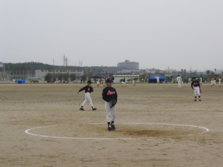試合会場は、なぜか雁ノ巣定番となりました。11番野球場のセンター側。