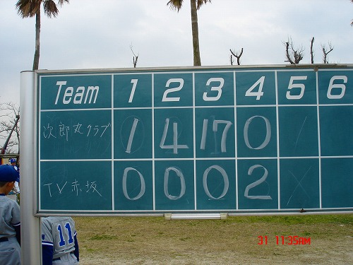 1・2回三者凡退のTVに対して、毎回得点の次郎丸さん。なんと、3回には先頭打者をアウトにとってから、打者一巡しても2アウトとが取れません