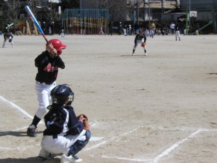 2回に、あもん、リッキー、ショウタロウ、しもんと4連打で2点獲得