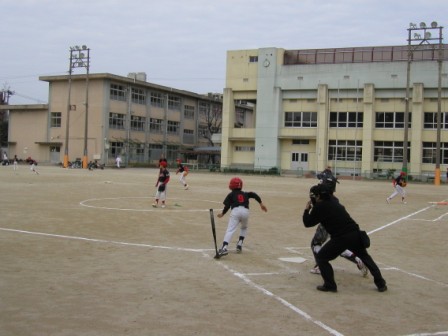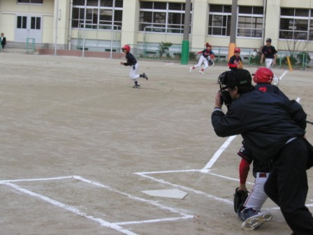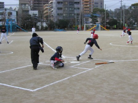 ただし、オレンジベースがあるので、右足を後ろにすると邪魔になるというのが理由で、ベースにつけた足を後ろ足にして、前足は2塁方向に1歩踏み出したように触塁するのが良いと教えているところもありますが、離塁アウトを避ける為、タイミングを、体が覚えるまで実践することが大事ですね!